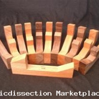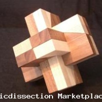 The second puzzle available from new designer Duane J. Einfeld, this puzzle is difficult on many different levels. it is simultaneously an interlocking solid, with sequential assembly and dexterity thrown in the mix for fun. The solution is straightforward but difficult. This puzzles was entered in the IPP26 Design competition.