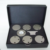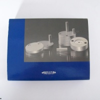 This puzzle consists of 6 discs with 1, 2, 3 or 4 holes, 1 disc, double thick, with clock and 2 holes and 4 rods, 2x 4 high, 1x 5 high and 1x 8 high.