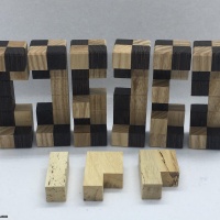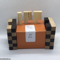 Very clever and beautiful IPP Burr puzzle. This was an IPP exchange puzzle by Eric Fuller. Only 35 extra copies were made for sale to the general public. When correctly solved you will have buried inside the burr the three additional pieces spelling IPP. The puzzle forms a traditional burr shape with each end forming a beautiful checkerboard pattern, but I only know that from photos. I bought this before I accepted that I'm lousy at burrs, and therefore the puzzle has only been out of the box so I could take these photos. This is also why I am selling it, so it can find its way into the home of a truly worthy burr lover. Although the puzzle won't arrive in a box packed with orange tape, it's in the same shape as it was when it came to me that way, complete with original box.