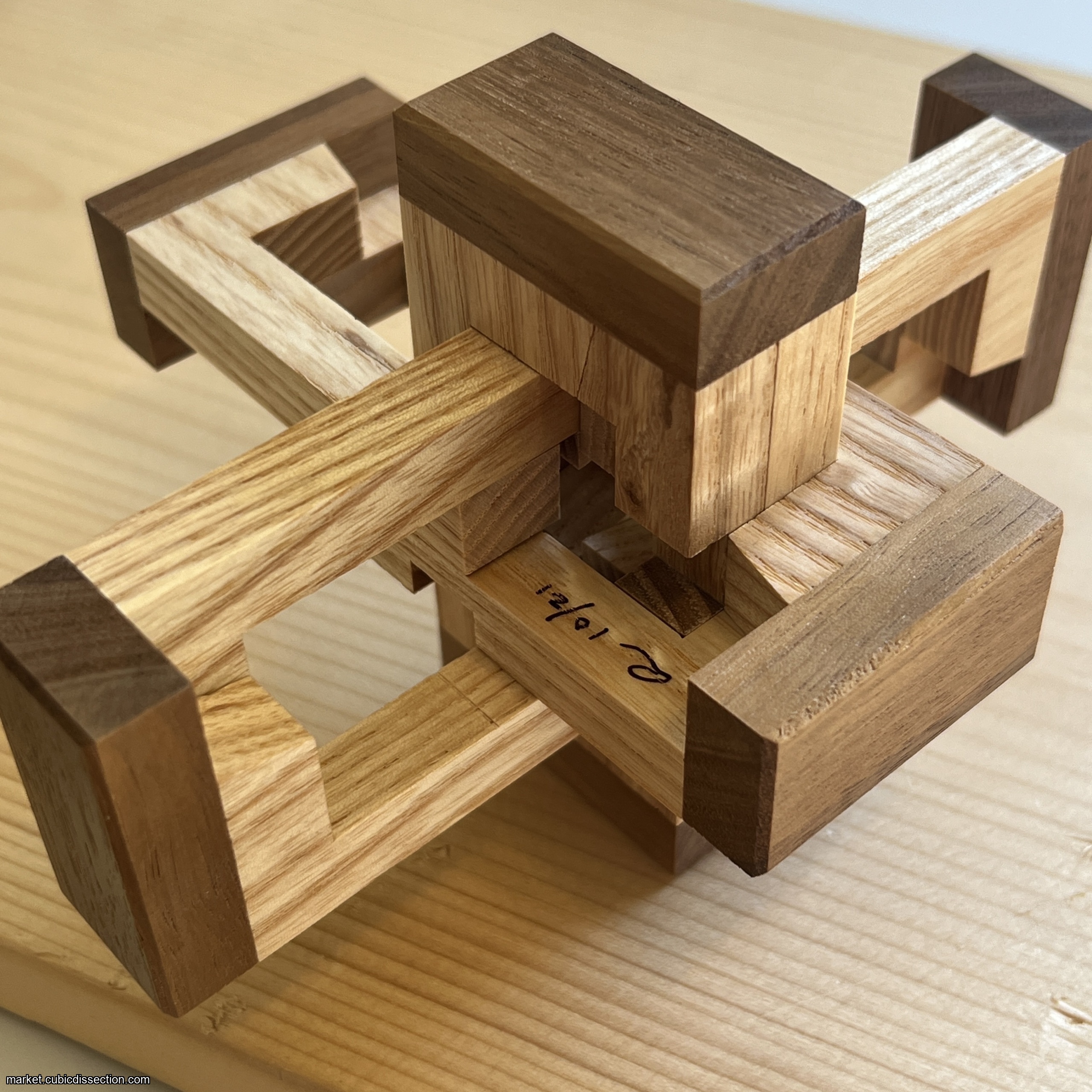 Japanese Wood Joint Burr was designed by Frans de Vreugd for the London IPP in 1999. Originally crafted in very small quantities by Wayne Daniel, Frans considers it one of his nicest designs. This burr is uniquely difficult in both concept and operation.