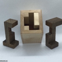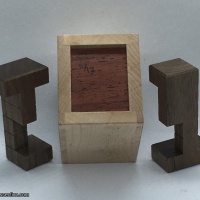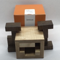 Stéphane Chomine's classic Jerrican.  Only 44 copies made.  Just two simple pieces go into a box with internal obstructions and constrained opening via an incredible 12.4 solution as the pieces dance around each other in delightful ways.  I could sit forever putting the pieces in and out just to relish the very cool way the pieces go up and down and slide past one another.  It was very hard to decide to sell it, but I haven't played with it in a long time and it's so very cool - it deserves to land in a new home that will idolize it as I once did.  Comes with original box.