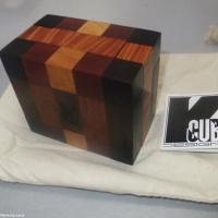Puzzle is a slightly loose fit but still solves well - It was an early design/build made in May 2010. The puzzle will complete with original solution card and drawstring bag