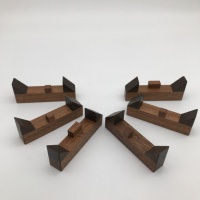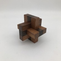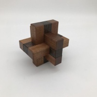 I hadn't heard from Duane in quite some time, but he mailed me this little gem of a puzzle and I had to make it. Kaon is a six-piece burr which features three pairs of pieces with mirrored cubes inside which restrict their position. It has two solutions, each with different assembly methodologies. A very simple, elegant design and exactly the kind I like to make.