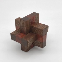 I hadn't heard from Duane in quite some time, but he mailed me this little gem of a puzzle and I had to make it. Kaon is a six-piece burr which features three pairs of pieces with mirrored cubes inside which restrict their position. It has two solutions, each with different assembly methodologies. A very simple, elegant design and exactly the kind I like to make.