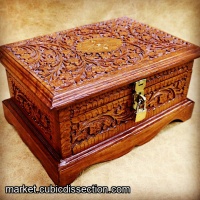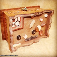 This is a one of a kind puzzle box from Kel Snake, a retrofit of a beautiful old jewelry box and made up of parts from various puzzles over the past 10 years. It is a challenging puzzle and has been a jewel of my collection, but is time to move on to someone else. I am listing this currently at well below the purchase price of $2000.