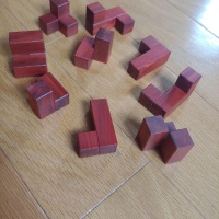 It's a 3d packing puzzle where you are given a list of 6 challenges to pick specific pieces from the 9 redheart pieces, and then have to get them all inside the box.....somehow. 2 challenges don't require rotations to get the pieces in the box, and 4 challenges do require rotations (the assumption is that it's impossible otherwise). So there's an element of dexterity as you manipulate the pieces inside the box.