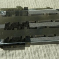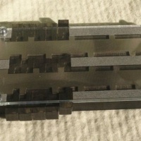 This puzzle is milled from solid stock, and there is no mistaking it for a cheap mass produced item. Weighing in at a hefty 12 ounces, the craftsmanship is evident when you see the slight tooling marks. The keys are milled from solid stainless steel; a very tricky material to work with. The base and sliders are milled to precision from solid corian.