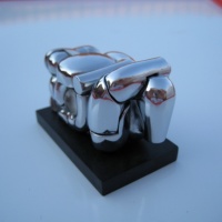 resting on a black base. Five of the chrome elements comprise a phallus