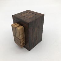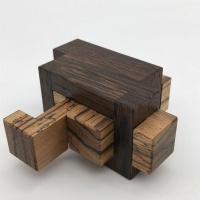 La Taupe is a fairly simple puzzle with a level 9 solution but I found the shape and concept so interesting that I had to try making it. I'm glad I did, the solution is fun and more confusing than you might imagine with a mere five pieces. The contrast between the Wenge and Zebrawood is beautiful. This guy is a little gem!