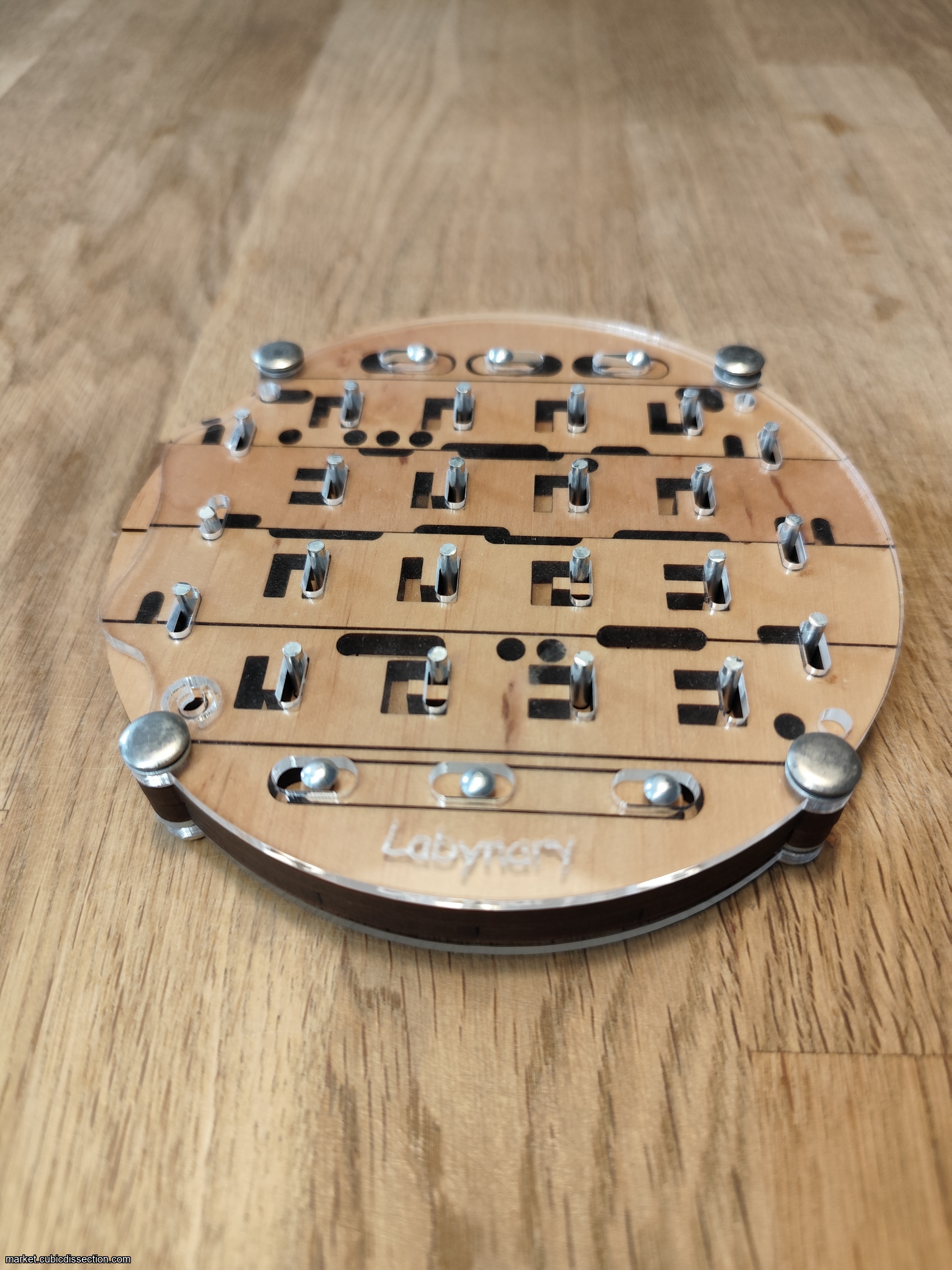 This is a binary (quartenary?) puzzle combined with a ball bearing maze in the back. This is a hard puzzle, be warned :)!