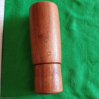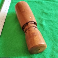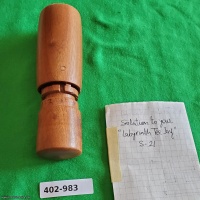 An interesting cylindrical handheld maze, constructed entirely of wood.  Outside finish is excellent, inside ring is labeled 0 to 9 for indexing, and end is stamped "S-21".  Original solution map included.