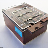 The objective can be reached by sliding the two pieces until one piece is going out. You can reassemble the puzzle in another way and there is also a solution to close the box.