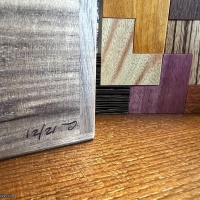 We constructed Letter Box from some of our finest wood stock. The solid walnut box shows excellent striping and deep color. Each of the nine pieces was milled from solid stock out of a different fine or exotic wood. (Canxan, Jatoba, Ash, Zebra, Bloodwood, Purple Heart, Katalox, Chakte Viga, Wenge)