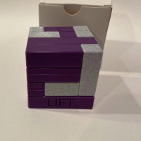 Lift by Andrew Crowell. From the master of TICs. This one does not require rotations but does have 2 balls (marbles) inside. It is a fun 20 move puzzle and takes some thinking to get it apart. This one has been solved once.