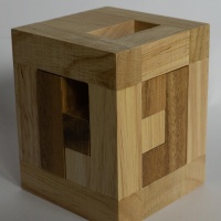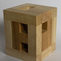 Rombol version of this well known caged burr which I found surprisingly tricky, even with only three pieces including the cage itself. Moves smoothly.