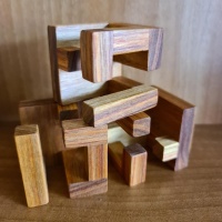 This puzzle requires the three identical allpieces to be aced together to form the Interlocking shape shown.
