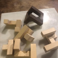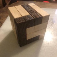 This clever 5 piece level 1.2.3.2.2 Turning Interlocking Cube (TIC) puzzle requires 10 total moves, including 1 or 2 rotational moves, to disassemble.   As I was reminded while taking the photos for this listing,  assembly can be quite a challenge, if you don't pay close attention during disassembly.   Figuring out where all of the pieces are supposed to go is just as (if not more) challenging as getting them there.