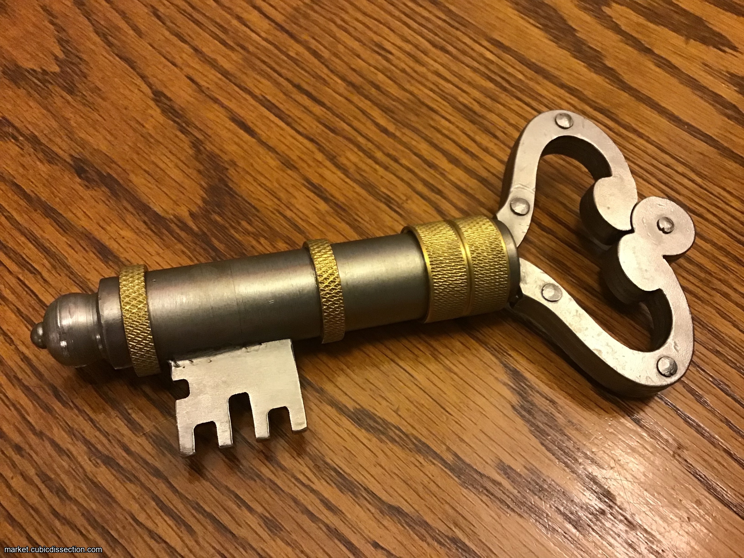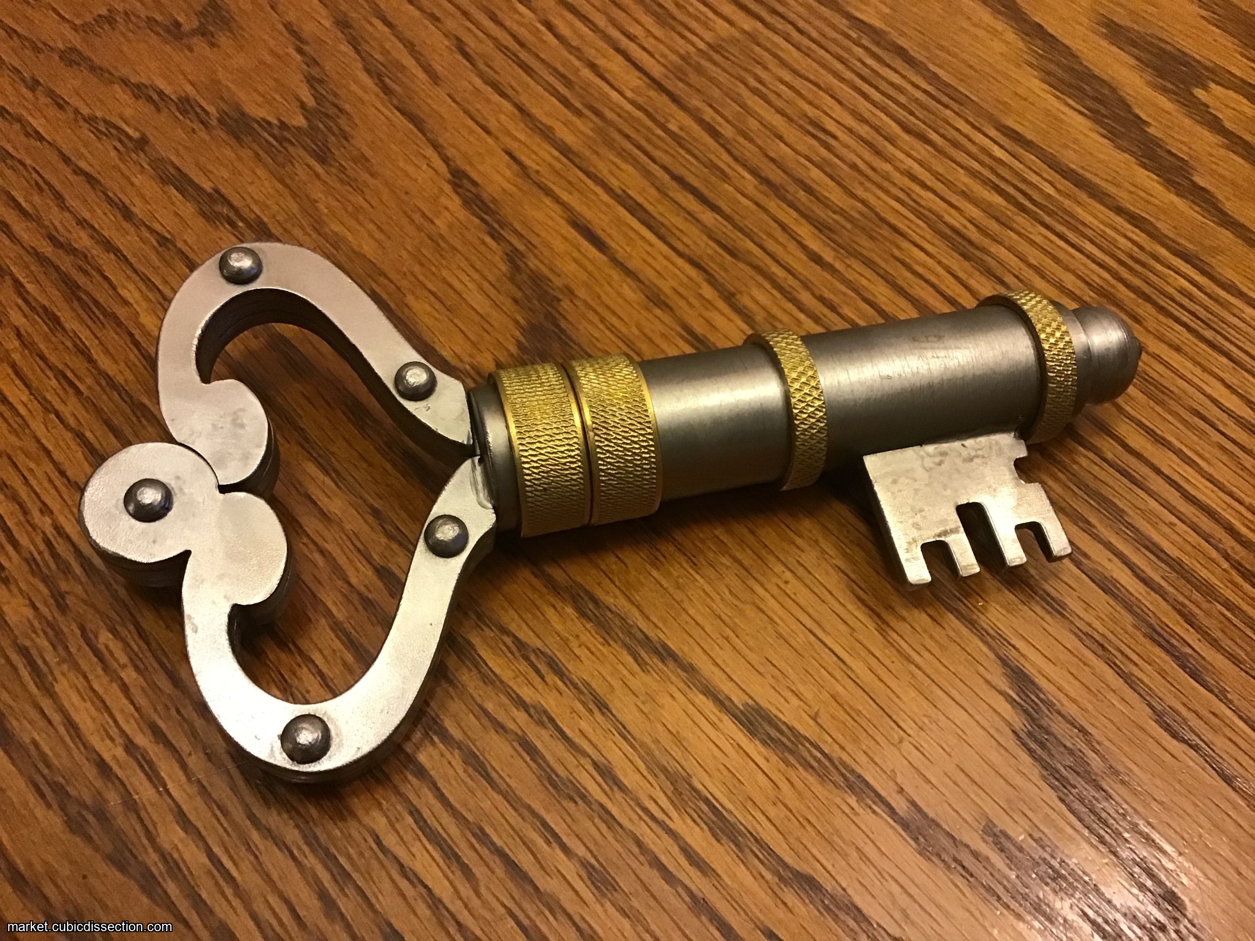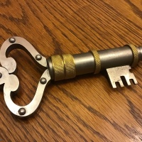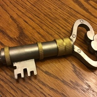 A puzzle lock in the shape of a large key!