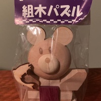 9 piece burr puzzle of Lucky Bear holding fish! New, unsolved, in original packaging!