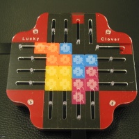 “Lucky Clover” is a unique sliding puzzle with 16 sliding pieces in four colors. Each color is numbered from 1 to 4.
