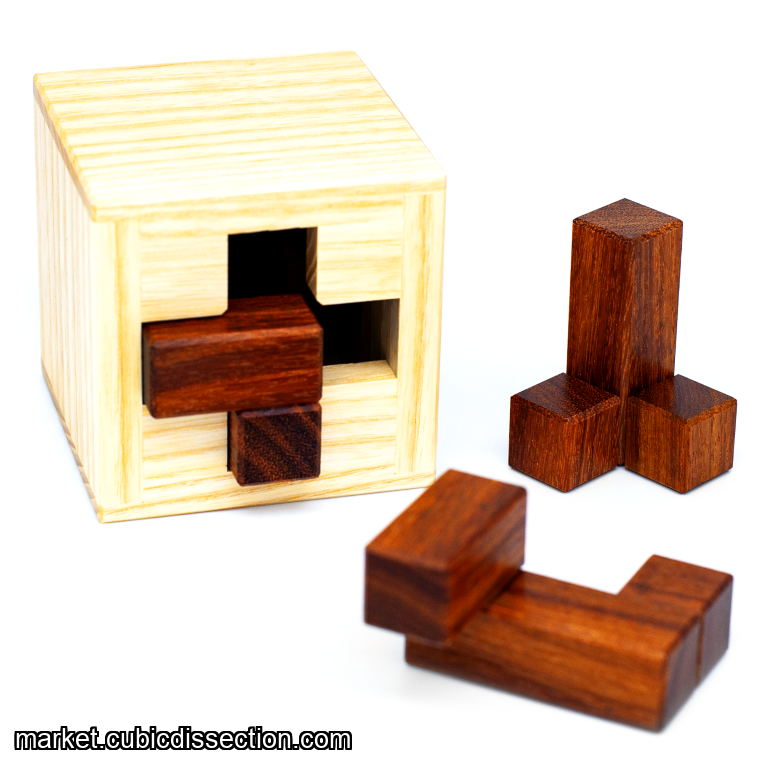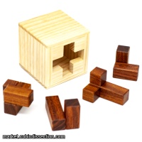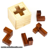 MagneTeam incorporates multiple challenges to keep you busy for some time! The first task is packing the three Grandillo pieces into the box so that all openings are filled, giving the illusion of a solid inner cube. The highest level assembly conforms to this requirement, with the other four falling short. The second task shares the same goal with the fourth piece's addition (made from Morado). This arrangement has three possible assemblies, and again the solution is the most challenging assembly.