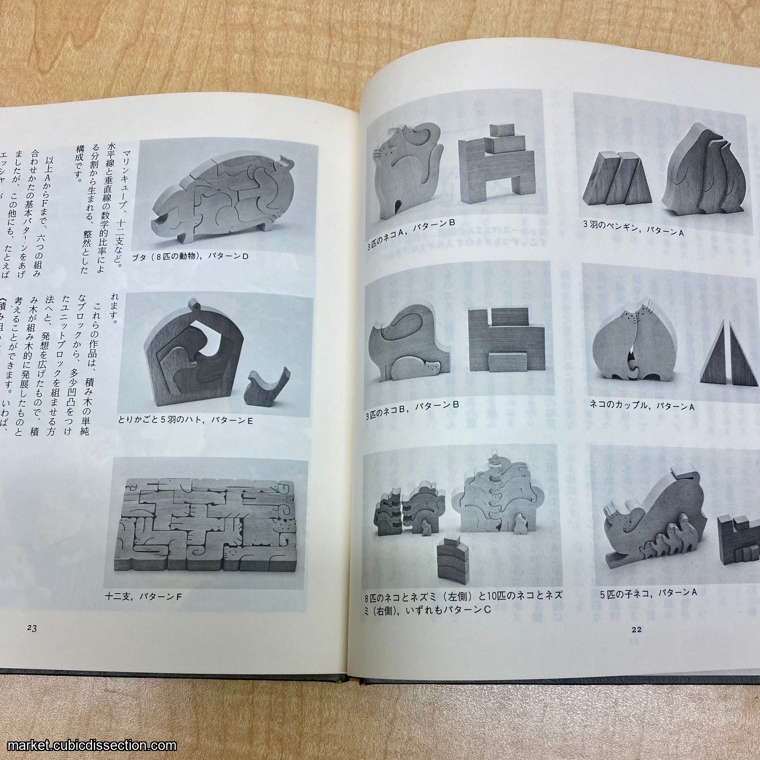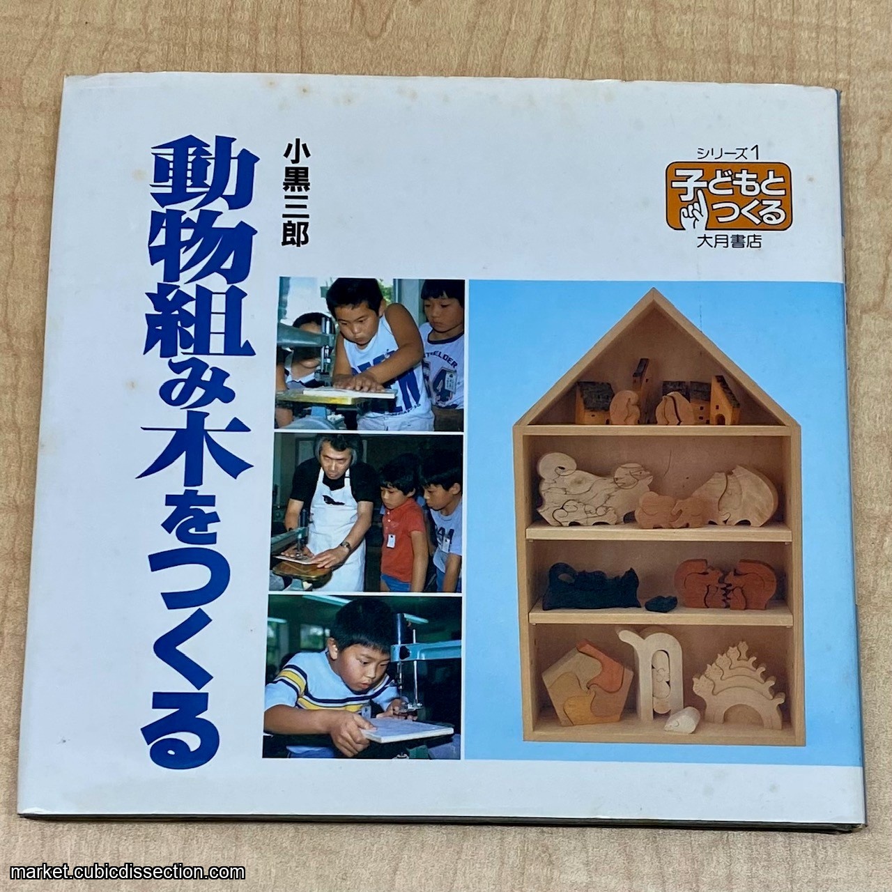 Illustrated book with instructions (in Japanese) and templates for making wood animal Kumiki/puzzles.  This book was sold to me as "signed by the author", and the pictured signature does match the author, but I cannot verify its authenticity.  Dust jacket is intact with some wear and discoloration on edges.  Book is in pretty good shape with pages clean and intact, but there is slight discoloration overall consistent with age, and more significant discoloration on one corner.