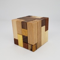 Ken Irvine is one of the best designers out there, and Matador is one of his Turning Interlocking Cubes series. The five piece puzzle has a tricky level 4.10 solution with some very unusual movements. The pieces interlock almost like rings or chain pieces, and the "ah-ha" is a very fun one indeed.