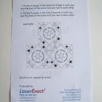 1.    Put the 9 pieces in the diamond shape in such way that the stars of the same kind are next to each other.
