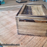 Hidden tricks and tools will keep you guessing as you solve your way through our newest sequential discovery puzzle box. Things are not always what they seem. Menace may fool you into thinking it is simple when in fact you have only just begun its multi-step journey. You will understand how menacing this box’s secrets are when you have found the secret prize hidden within its final compartment. Menace’s sleek aesthetic uses a single exotic wood for a clean, simple appearance that belies the complexity of the mechanisms hidden within its 5.25” x 3.5” x 2.5” frame.