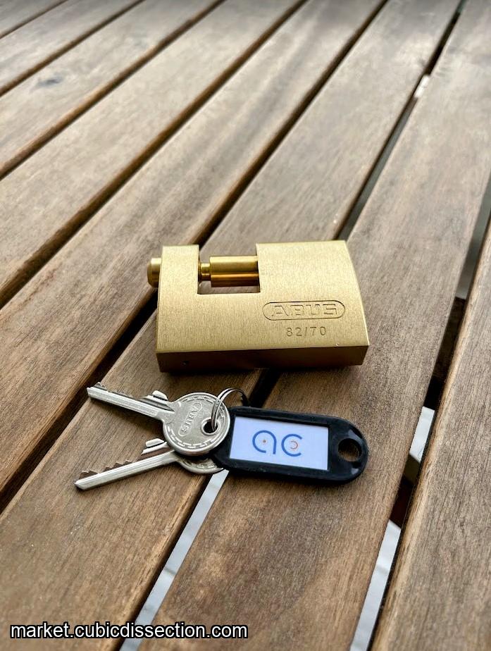 This puzzle lock aims to deviate from convention. Rather than the standard padlock that collectors have become familiar with, this ‘shutter’ style lock utilises a cylindrical bolt-like shackle. As usual, a simple key turn is not going to get you very far, but with some patience and attention you can work towards finding the solution.