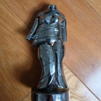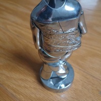 Berrocal sculptures are genuine puzzles and a delight to take apart or put together. It makes for a striking figure in metal and the pieces look almost random in how they can go together at all! He also loves to toss in some lewd twist such as the brass ring in the Mini Cariatide which only shows itself as a peek between the woman's crossed legs. I say with some shame this brought me great amusement every time I see it in passing.