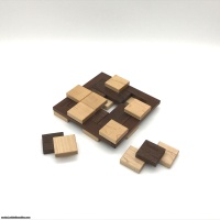 William continually comes up with new and innovative designs. His Mini Chessboard is no exception. An interlocking puzzle with a level 1.2.9.2 solution, it's not impossibly difficult. It IS a lot of fun to solve though, with lots of fun sliding and figuring out which piece fits where within the constraints of the fixed portions of the frame.
