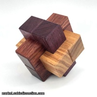 This puzzle came out very nicely, with a precise fit and a solid maple cube with magnets on each face to keep the inherently instable assembly together once solved.