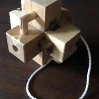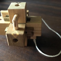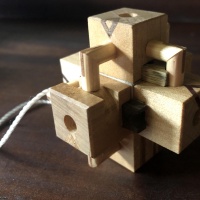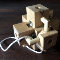 "At first glance, it looks like a tree, but none of the pieces can be removed. Don't try to fall apart. Moving the stopper at the base of the cube piece will allow the piece to rotate. The purpose is to find a place that works well, move it in order, and finally remove the string attached. It's a slightly strange spinning puzzle."