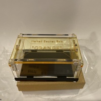 For auction is the Naked Secret Puzzle Box by Aiko Yamamoto. This is the orange box. There are different colored boxes in the series with each having a different mechanism. Excellent condition and solved once. You may find a few fingerprints on it from solving. Comes in original box and packaging with solution sheet.