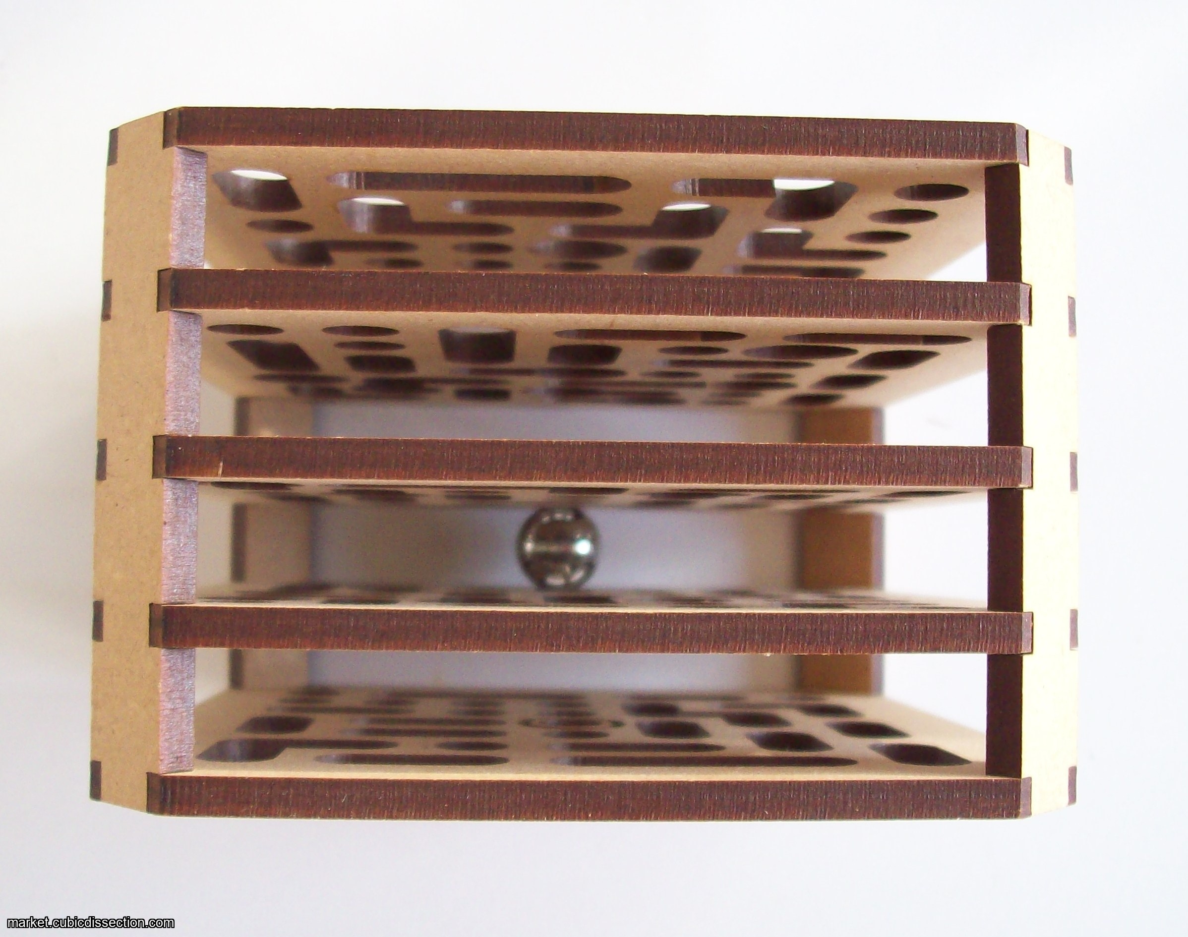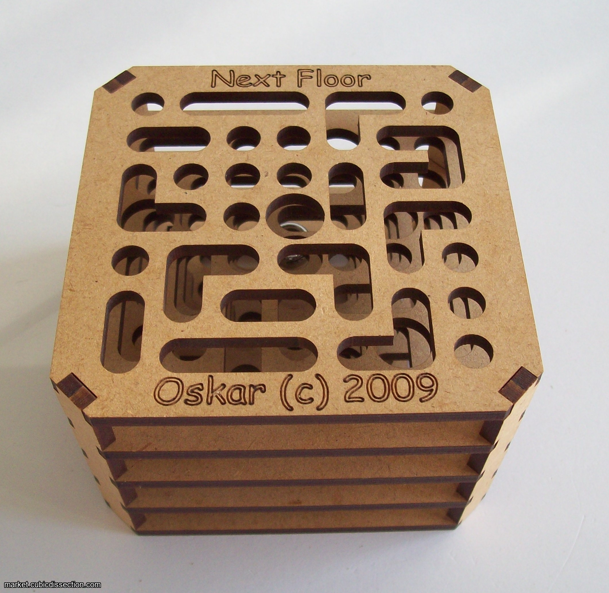 The puzzle is a multi-layer ball maze. Try to get the steel ball out of the maze.