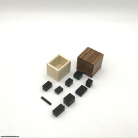 I saw this puzzle on Ishino's excellent site and thought it was interesting. While I was browsing, I was playing around with a leftover matchbox from Oskar's Matchboxes that I had fitted with a couple magnets to keep the drawer closed. Then it hit me! Make the packing puzzle in a small format just like the Matchboxes puzzle! The result is a pocket portable packing puzzle, beautifully made, which will not slide open and fall all over the place thanks to the magnets. Furthermore, the box is two sided so that you don't have to know the solution to transport it...the pieces pack rather easily into both sides, and more difficultly in the solution side. Take your hobby on the road!