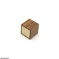 Construction of this puzzle is very nice, with shouldered joinery and bevels everywhere. The combination of zebrawood, holly and ebony looks great. Fit is dead-on, with the drawer fitting snugly into the box.
