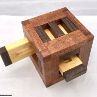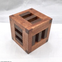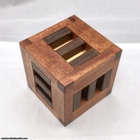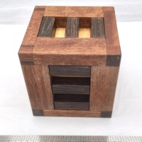 It consists out of nine pieces and a Box. The aim of this wooden puzzle is to disassemble all pieces out of the box and put it inside again. You can take apart the first piece after 2 moves and there are 24 moves altogether to take apart all pieces. This Puzzle is the smaller version of Twelve Board Burr but more difficult to solve.