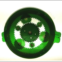 The goal of Gear Up is to rotate the discs until the notches in the four tabs are exactly aligned. The puzzle is a stack of four plastic discs attached via a central axle, each has a tab and a notch and can rotate in the axle. The plastic is transparent so that various internal planetary gears can be viewed as the discs are turned. The puzzle operates on the same principle as the differnetial gear in a car. Gear Up was presented to the puzzle community in 2005 by Dave Rossetti. This puzzle is a creation of Oskar van Deventer and was designed during the height of his "gear period". It is a flattened version of the far more expensive Gear Head puzzle.
