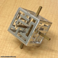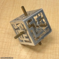 This metal puzzle is a 3-dimensional maze. From a previous CD Marketplace listing: "This is a metal discontinued item... As described by Oskar, it is a 3-dimensional mechanical maze which has a surprising number of possible configurations, with a minimum of 36 distinct slides required to move the star from one end of the maze to the other. Each side of the cube is marked with a *circle* and *square* to dignify the start and end positions."