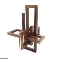 Another classic by Oskar van Deventer, the Paperclips puzzle is rarely made, and for good reason. The length of the sticks and small surface area for overlap at the edges makes it very difficult to construct. Each corner is reinforced by a shoulder joint, then sanded flush and further reinforced with a full length spline. This is a very time consuming process, but is the only way to ensure the strength and rigidity necessary for this work of art.