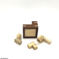 Pack 3 is a wonderful little gem of a packing puzzle by Mr. Yamamoto. The three pieces fit inside a 3x3x2 box with a very unusual opening.  There are two solutions, one trivial and the other tricky. The trivial solution puts the pieces in the box, while the tricky and intended solution is to put the pieces in as an apparent 3x3x2 with no holes showing from the opening. A wonderful concept, and it was nice to make another of his designs after so long.