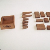 Pack 14 pieces into box as a solid block with no voids. The 14 pieces can also be assembled into a planar rectangle, and, with artistic license, into “Äbel” and “Berlin”.
