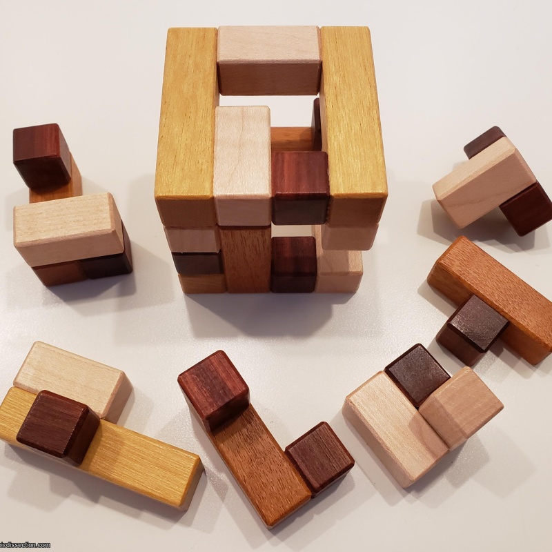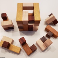 "One of Andrew's (and my) favorite designs is sure to become one of yours too! I have run out of adjectives to describe Andrews wonderful designs, so lets just say this one is great. A real challenging set of rotations awaits you with this one. I also hate to say this but if you have thicker than average fingers, you will need the aid of pencils or some sort of tools to work inside the frame. Ships unassembled. Moves - 24 total with 5 Rotations."