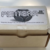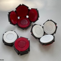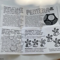 Pantera Jr. consists of 12 pentagon shaped pieces composed of two colored chips (red and white) and 5 magnets for the edges. Each piece is about 1 ¾” x 1 ¾” x ½”
