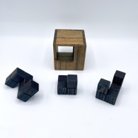 Osanori apparent cube packing puzzle crafted in beautiful exotic woods by Pelikan. Includes original box.