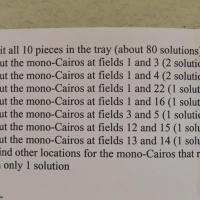The puzzle consists of 10 pieces and a frame. The goasl is to fit all pieces in the frame, while to mono-cairo pieces are placed at predefined positions. Various challenges are given (see picture 5 6)