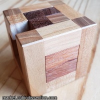 This has been sitting on a shelf for years and I had long forgotten the name of the puzzle or designer until I stumbled upon a description on Bernhard Schweitzer's Puzzlewood.de site which identified both. Further searches led me to Allard Walker's blog about the same puzzle and I am now confident to offer it as described. Two burr pieces in a cage - simple - but many more moves than you would expect!