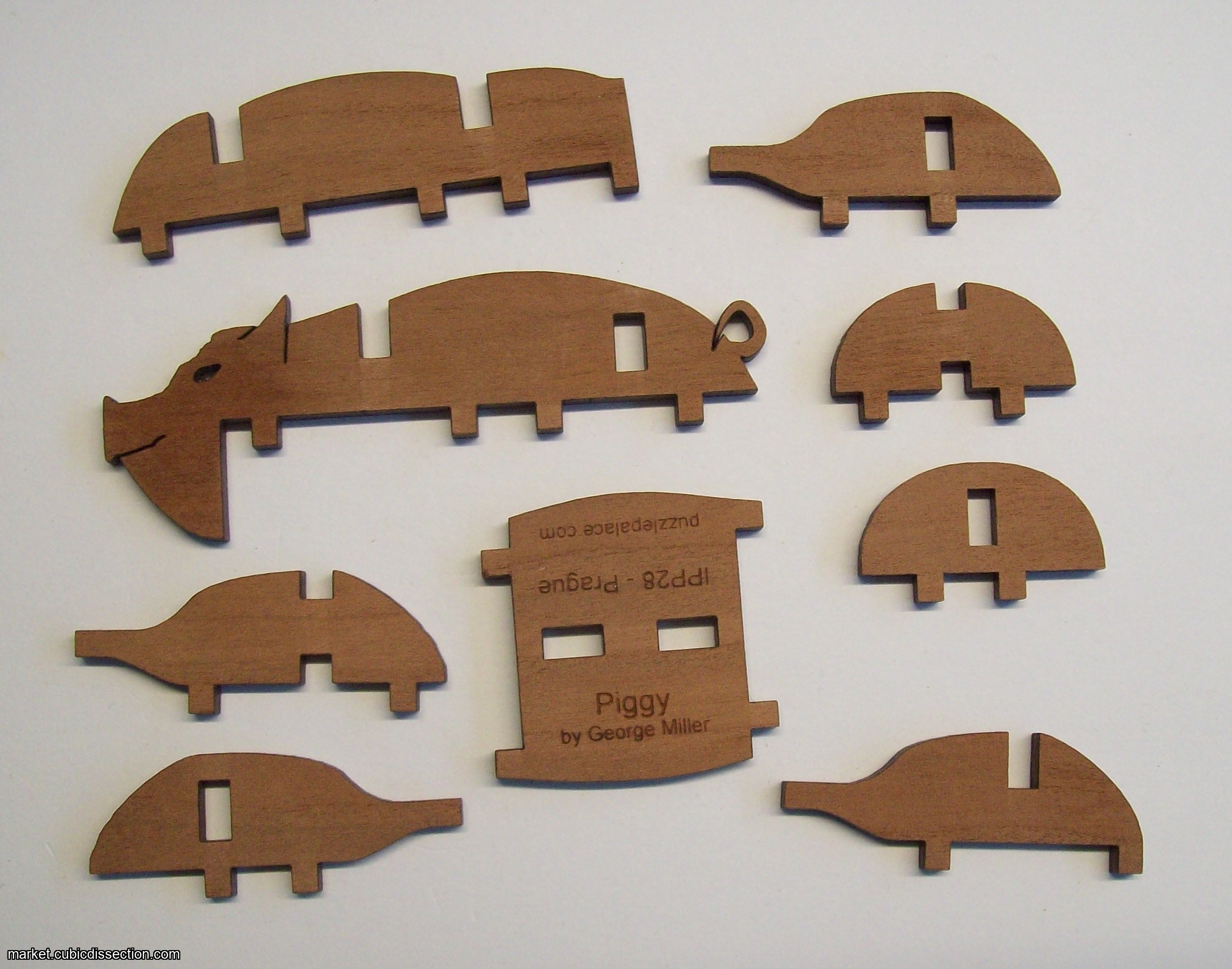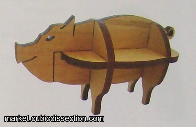 Assemble all nine pieces into the standing figure of a pig.
